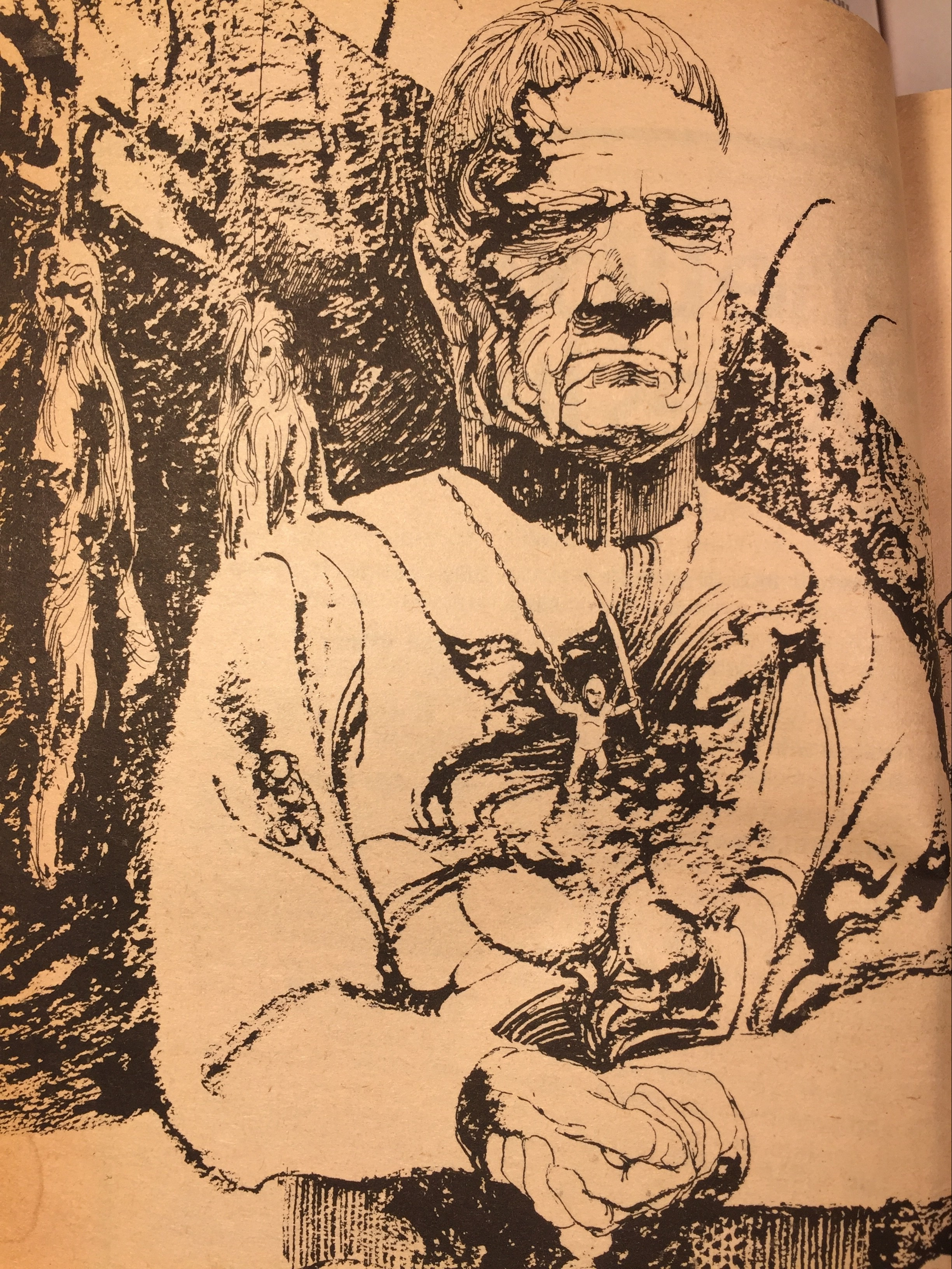 img_1586-1 August 8, 2019Full resolution (2449 × 3264) Proctor Wyatt standing in front of the hanging sacrifices while wearing a Bakkalon figure necklace. Artist: John Schoenherr